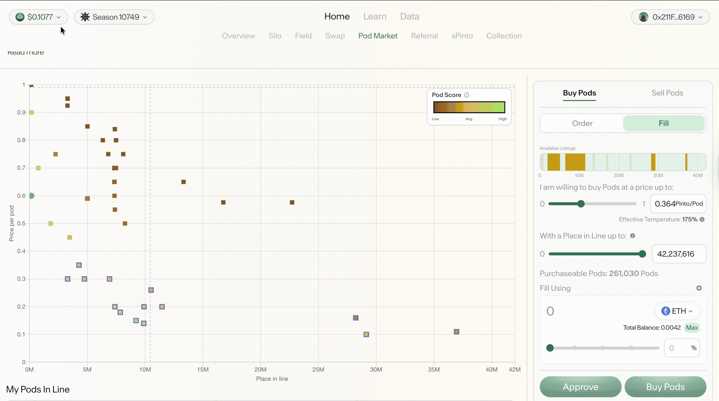 This is the operational hub. I designed this to give users an instant pulse on the market by prioritizing global metrics like pinto price and total liquidity.